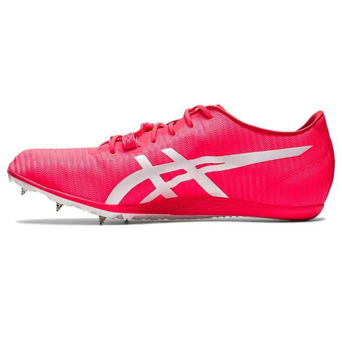 400mから1500mをターゲットに開発された中距離用スパイク。アウターソールは高反発のフルプレートを採用。プレートのリブの高さをエリアによって変え、前足部は屈曲しやすくすることで推進力を高め、中足部は剛性を高めることで安定性を発揮する構造にしています。ミッドソールには軽量素材のFLYTEFOAMを採用。アッパーには肌触りがよく、バネのような弾力性をもつHL-0メッシュを採用。優れたフィット性を発揮し、走行時のパワーロスにつながる足のブレを抑制します。さらに中足部に搭載されたDYNAWRAPがシューレースと連動して走行時のシューズ内での足のブレを抑え、安定した走りをサポートします。