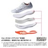 前作より大きく進化を遂げた、フルマラソン3時間~3時間半以内のタイムを目指すランナー向けのレースシューズ。推奨ペースは3分30秒~5分/00秒km前後。ミズノ独自のスピードテクノロジー「スムーススピードテクノロジー」を今作より搭載。フォアフット走行に近い効率的なランニング動作に導き、ふくらはぎ周辺の筋肉を疲労しにくくすることで、目標達成をアシストする。ガラス繊維で強化されたナイロンプレートを上下2枚のフォーム材で挟み込む3層構造のミッドソールが履きやすくも高いクッション性と反発力、安定性を生む。