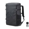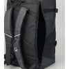 総容量50Lのスクエアバックパックです。水を染み込みにくくするために、PVC加工を施した生地を本体に使用しています。オリジナルロゴ入りの裏地には抗菌防臭加工を施しています。メインルームにアクセス便利な縦型ファスナーが付いています。ショルダーハーネスの形状は肩から身体に沿う構造で、背負ったままでも取り出しスムーズなポケットが左側についており、スマートフォン、ICカードケース、鍵などを収納できます。チェストベルトを装着すればより安定したフィット感で着用できます。本体内側にはクッション性のあるPC/タブレットポケットとメッシュの吊りポケットがついています。両サイドには大容量で便利なメッシュポケット、蓋部ポケットと、充実の収納力です。あまり荷物を入れない時は、両サイドのベルトで容量の調節が可能です。ショルダーハーネス部と両サイドに、リフレクターベルトを搭載しています。