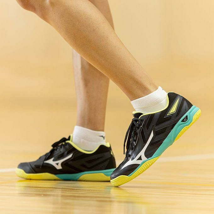 ミズノ MIZUNO メンズ レディース 卓球 シューズ ウエーブカイザーブルク 881GA242003 ブラック×ホワイト×ライム 【2024FW】