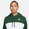 水平のカラーブロックパネルをカットして縫い込み、定番のナイキ クラブ フリース パーカーをワンランク上のスタイルにアレンジ。