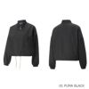 モダンで洗練されたインフューズウーブンジャケットです。クロップド丈、立ち襟、コフルジップクロージャーをあしらいました。控えめな色調のブランドロゴを胸に施し、コントラストカラーのジッパータブでアクセントをプラスしました。普段使いにぴったりな一枚です。サステイナブル志向の女性に向けたストリートウェアコレクション「INFUSE (インフューズ) 」。本コレクションのキーワードは、「Less is more. Natural is beautiful.」。クリーンでミニマルなデザインが特徴で、高品質の素材を使用しサステイナブルな生産工程で作られています。現代の女性にマッチする、快適且つ洗練された最新のストリートウェアを揃えています