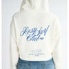 ややワイドシルエットのZIPアップフーディー。フードには平紐を付け、裾はドローコードで着丈の調節を可能にしました。バックと胸元には印象的なタイポグラフィーで「ROXY Surf Club」をあしらいました。ドロップショルダーで、裾と袖口はリブの仕様。カンガルーポケット付き。