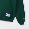 肉厚な素材で型くずれしにくく、着こむほどに肌に馴染みます。裏面は柔らかく温かみのある裏起毛仕様。大きくゆとりを持たせた身幅、肩幅、袖幅に対し、着丈をやや短めにして着用時のシルエットのバランスをとった、「ACTION STYLE(アクションスタイル)」独自のサイジングのルーズフィットです。裾部分にゲームジャージーなどに見られるジョックタグ付きで、ジップの下には1990年代をイメージした4色刺繍によるCロゴとChampion(チャンピオン)ロゴ入り。