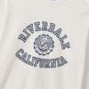 胸のプリントはチャンピオンと親和性の高いカレッジ風の書体による文字で、校章風のイラストを上下から挟んだグラフィック。オフホワイト、ライトイエロー、オートミールのボディには染み込みプリント、その他のカラーのボディにはラバープリントを使用しています。