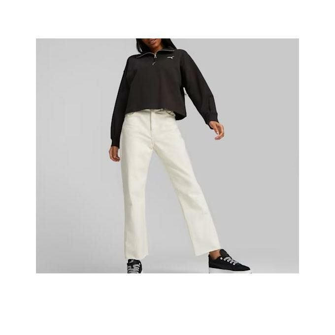 クラシックなシルエットをモダンにしたHER。流行のゆったりとしたシルエットとハーフジップが特徴。シンプルなプーマキャットロゴで着回しがしやすいアイテムです。