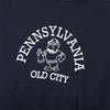 胸のグラフィックはカレッジ風の書体によるアメリカの地名を中心としたもので、「HOUSTON 768 PHYS.ED.(ハウストン 768 フィジカルエデュケーション)」には染み込みプリント、「NORTH DAKOTA(ノースダコタ)」にはラバープリント、「PENNSYLVANIA(ペンシルベニア)」とオリジナルキャラクターのイラストを組み合わせたタイプにはハーフラバープリントを使用。ボディカラーごとに異なる色で表現しています。製品洗い加工による肌馴染みの良い快適な風合いと、洗濯後の縮みにくさもポイントです。ネームタグは1970年代モデルの「青単タグ」(青単色タグ)を採用しています。