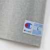 裾部分にジョックタグ付き。襟の内側にChampion(チャンピオン)ロゴ入りのテープを貼って襟ぐりの補強を行うと同時に、デザインにアクセントを添えています。左胸に入れた身生地と同色の立体的なCロゴ刺繍もポイントです。