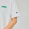 環境に配慮して生産されたサステナブルなアメリカ綿を100%使用した、軽量で柔らかく肌触りの良いショートスリーブTシャツです。身幅にゆとりを持たせたリラックスフィット。左胸に入れた、気持ちも明るくなる「HAPPY(ハッピー)」「LUCKY(ラッキー)」のプリントは、ふっくらとした立体感の出る発泡プリントで表現。ワードの下にラバープリントで入れた「CHAMPION 1919(チャンピオン 1919)」もさりげないこだわりです。製品洗い加工による肌馴染みの良い快適な風合いと、洗濯後の縮みにくさもポイント。