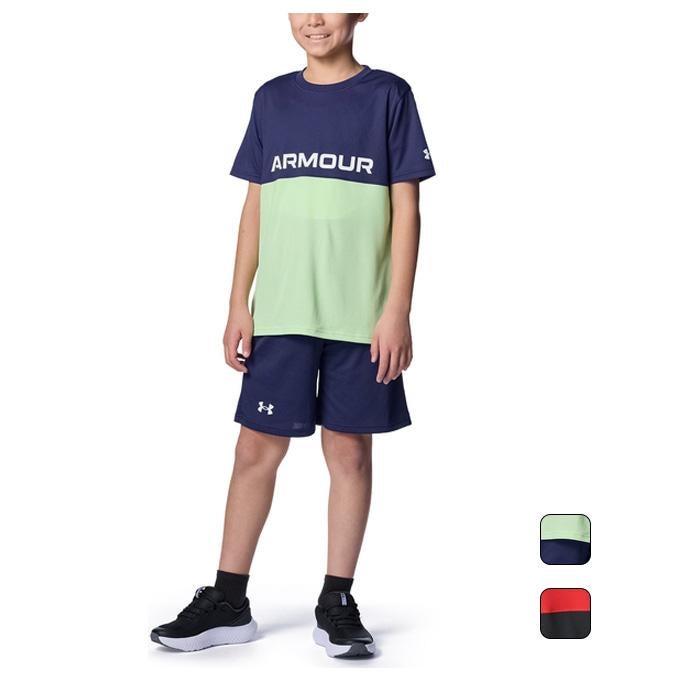 アンダーアーマー UNDER ARMOR キッズ ボーイズ トレーニング ウェア上下セット UA TECH COLOR BLOCK T-SHIRT & SHORTS SET 6001343 【2026SS】