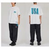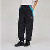 表地はマット調でシワ感のあるナイロン生地、裏地にはメッシュを使用したロングパンツです。ウエスト、ワタリにゆとりを持たせたワイドシルエットで、裾口はシャーリング仕様です。左腿に「USA(ユーエスエー)」とCロゴの刺繍入り。1990年代のアスレチックウェアを彷彿させるウエスト脇の切替と左腿の刺繍をカラー連動させているのもポイントです。