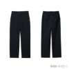 身体のラインを拾いにくいストレートシルエット。ウエストは、前開き+紐付き仕様。ベルトループ付き。左右ポケット付き。後ろポケット2つあり。
