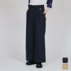 環境に配慮して生産されたサステナブルなアメリカ綿を100%使用した、ストレッチ性のあるコットンツイルのフルレングス丈ワイドパンツです。腰から裾にかけてワイドなストレートラインのシルエットで、ヒップ周りはゆったりしたフィット感。ウエスト後部に平ゴム入りで、ドローストリング付き。さらにベルトループもあるため、好みの方法でサイズ感やフィット感を調節できます。両脇にポケット付き。製品洗い加工による肌馴染みの良い快適な風合いと、洗濯後の縮みにくさもポイントです。