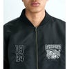 スケートスカルの刺繍を大胆にレイアウトした、インパクト抜群のバックスタイルが魅力