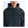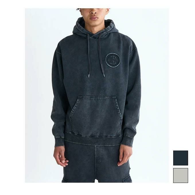 暖かく柔らかな裏起毛のフリース生地を使用したフーディ。生地に特殊なダメージ加工を施し、ヴィンテージライクに仕上げました。背面に大きくあしらった円形のDCロゴアップリケと刺繍が印象的。ドローコードのチップにはさり気なくDCスターロゴをレイアウト。同タイプのフリースカーゴパンツとのセットアップ着用もおすすめです。