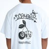 チェリー型のエイトボールやダイス、タギング調のロゴグラフィックをプリントした半袖Tシャツ。