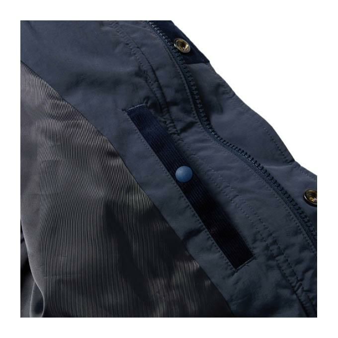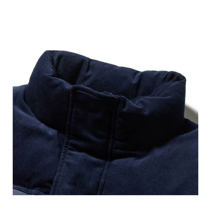 柔らかな風合いが特徴のワッシャーナイロンを採用したコレクション。身頃上部はコーデュロイ生地で切り替え。身幅を確保した、程よくゆったりとしたシルエット。