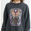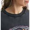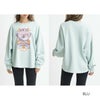 ヴィンテージ加工を施したクルーネックプルオーバートップス。袖にボリューム感を持たせ、裾はラウンドカットで仕上げた、オーバーサイズが魅力の1着です。レトロな多色のグラフィックを施し、アーティスティックな印象に仕上げました。