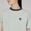 左胸には、リブの色に合わせた鮮やかな色のハートマークにCロゴを入れた特徴的なグラフィックの刺繍入り。