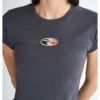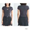 ヘリテージロゴシリーズのシンプルなチビT。袖は短めでクロップド丈なので、ワイドボトムとの相性抜群です。フィット感のある、フラットリブ素材です。胸元のセンターにはヘリテージロゴの刺繍ワッペンをあしらいました。シンプルなデザインなので、1枚持っていると便利です。