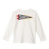 背中に野球のペナントとカレッジ風フォントでデザインした「CHAMPION」を組み合わせたデザインのプリント入りです。
