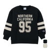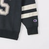 Champion(R)(チャンピオン)のスウェットシャツは、「ザ キング オブ スウェットシャツ」と評されるほど、世界中の多くのファンに愛されてきました。環境に配慮して生産されたサステナブルなアメリカ綿80%、ポリエステル20%を使用した裏毛素材で、生地表面のピーチ起毛による柔らかなタッチが特長のクルーネックスウェットシャツです。コットンの肌触りの良さとポリエステルの汎用性を兼ね備えた薄手の生地なので、年間を通して快適に着用できます。身幅、肩幅、アームホール、袖幅にゆとりを持たせたリラックスフィットで、袖に太い2本のラインで切り替えを入れた特徴的なデザイン。胸に入れたプリントは、チャンピオンブランドと親和性の高いカレッジ風フォントでデザインしたアメリカの地名とナンバリングを組み合わせたグラフィックで、袖の切り替えと色を合わせてラバープリントで表現しています。