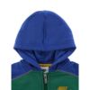 起毛コットンのブラック スウェットシャツ、フード付き、長袖、サイド ポケット、前面にジッパー付きクロージャー。