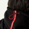 ■サイドにブラックアウトのロゴ刺繍、後部にはレッドのロゴテープを配置。