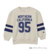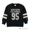 Champion(R)(チャンピオン)のスウェットシャツは、「ザ キング オブ スウェットシャツ」と評されるほど、世界中の多くのファンに愛されてきました。環境に配慮して生産されたサステナブルなアメリカ綿80%、ポリエステル20%を使用した裏毛素材で、生地表面のピーチ起毛による柔らかなタッチが特長のクルーネックスウェットシャツです。コットンの肌触りの良さとポリエステルの汎用性を兼ね備えた薄手の生地なので、年間を通して快適に着用できます。身幅、肩幅、アームホール、袖幅にゆとりを持たせたリラックスフィットで、袖に太い2本のラインで切り替えを入れた特徴的なデザイン。胸に入れたプリントは、チャンピオンブランドと親和性の高いカレッジ風フォントでデザインしたアメリカの地名とナンバリングを組み合わせたグラフィックで、袖の切り替えと色を合わせてラバープリントで表現しています。