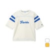 前身頃にはアメリカの州名「colorado(コロラド)」「florida(フロリダ)」を、ボディカラーごとに異なるフォントと色を使ってラバープリントで入れています。製品洗い加工による肌馴染みの良い快適な風合いと、洗濯後の縮みにくさもポイントです。
