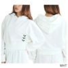 ショート丈のフードプルオーバートップス。ワイドシルエットで、裾と袖口をリブで仕上げました。軽めの裏毛を使用しているので、乾きやすいのが特徴です。左裾には刺繍のROXYハートを縦に3つ並べてアクセントをプラス。フード口のロゴアイレットもポイントです。同素材のワイドパンツとセットアップでの着用がおすすめ。速乾・UVカット機能付き。