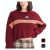 ワイドシルエットでクロップド丈のシルエットに仕上げた、リブ編みニットトップス。ドロップショルダーで、袖口にボリュームを持たせたトレンドのアイテムです。胸元に入れたラインにオーバルのワッペンのせたデザインがポイントです。