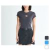 ヘリテージロゴシリーズのシンプルなチビT。袖は短めでクロップド丈なので、ワイドボトムとの相性抜群です。フィット感のある、フラットリブ素材です。胸元のセンターにはヘリテージロゴの刺繍ワッペンをあしらいました。シンプルなデザインなので、1枚持っていると便利です。