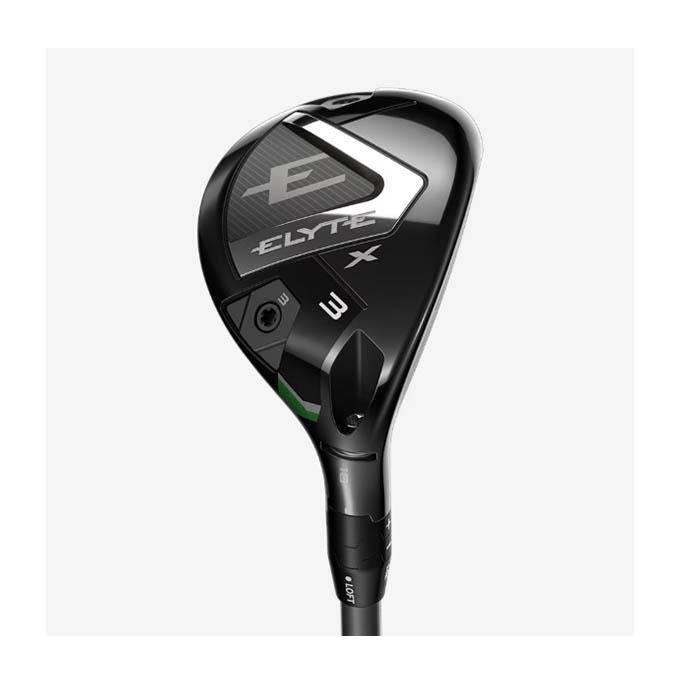 シリーズのなかでも、よりやさしく飛ばしていけるモデルとなっているのが、「ELYTE Xユーティリティ」です。ELYTEユーティリティと比較すると、フェースのトウからヒールまでの距離と、フェース面からヘッド後端までの距離が長くなっているため、構えたときの安心感は大きく、かつ、この形状によって、よりボールが上がりやすくもなっています。フェース素材は、より飛距離を追求して、カーペンター455スチールを採用。ボディには、剛性が高い17-4 ステンレススチールが使用されています。ウェイトは、前述のようにソール後方のトウとヒールに2カ所、搭載されており、初期設定ではトウが約13g、ヒールが約3g(7Hのみヒールが約9g)です。