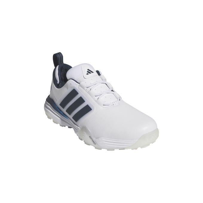 アディダスのアディパワー 26 ワイド スパイクレス ゴルフでプレーをパワーアップしよう。このシューズは正確で安定した土台として、ラウンドを重ねるごとに上達をサポートする。
