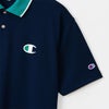 柔らかい肌触りと、軽量でドライな素材感が特長の、小さなグリッド調の表情を持った素材を使用したショートスリーブポロシャツです。薄手ながらUVカット機能と吸汗速乾機能を備えています。左胸には2色使いのCロゴを、背中には2色使いのChampion(R)(チャンピオン)ロゴと「AUTHENTIC AMERICAN ATHLETICWEAR(オーセンティック アメリカン アスレチックウェア)」を組み合わせたグラフィックをラバープリントで入れています。襟と襟につけたテープのカラーを胸のCロゴと連動させたデザインもポイントです。