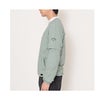 プルオーバータイプのブルゾン。袖は取り外し可能で、半袖ブルゾンとしても着用でき、早い時期から重ね着スタイルを楽しめます。フロントには、今シーズンらしいスポーティーなロゴを大胆に配置。裏地には嵩高性のある「ふんわり裏地」を採用し、薄中綿のような柔らかな肌触りが魅力です。同素材のボトムとのセットアップコーディネートも、今シーズンのおすすめスタイルです。