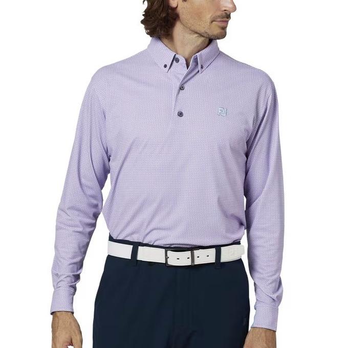 フットジョイ FOOTJOY メンズ ゴルフ ウェア トップス ポロシャツ 3Dピラミッドプリント長袖ボタンダウンシャツ 38544 オーキッド 【2025FW】
