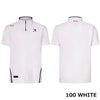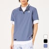 衿と脇にライン配色を入れたスポーティーなモックで、背中衿元に印象的な三角のベンチレーションを配置。