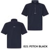 春先に重宝すること間違いない、ショートスリーブのプルオーバーウインドジャケット。弾力性のあるナイロンベースのリップ素材を使用。軽量で快適な着心地とスイングを妨げない優れた伸縮性、最先端の撥水性を兼ね備え、ゴルフウェアクローゼットに取り入れたい頼もしいアイテムです。ハーフジップ開閉、スタンドカラー、便利なウエストポケットを備えたシンプルなデザイン。コースの外でも着用できるオールマイティなアイテムです。