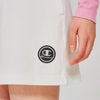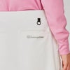 環境に配慮されたリサイクルポリエステル94%、ポリウレタン6%の生地を使用した、軽量で柔らかな肌触りの、ベルト不要のスカートです。畝(うね)のある表面感が特長で、ストレッチ性、吸汗速乾、UVカット(UPF50+)など優れた機能を兼ね備えているので、暑い中でも快適にプレーができます。ウエストは脱ぎ着の際のストレスを軽減するベルトレス仕様で、ドローコードでフィット感を調節することも可能です。透け防止だけでなく、ラウンド中にスカートが回ってしまうことを防ぐ一体型のパンツ型インナーが付いています。左前腿にはCロゴとChampion(チャンピオン)のコンビネーションロゴを素押ししたワッペン、右ヒップにはChampionロゴをプリントしています。後部にオリジナルDカン付き。同素材を使用したモックネックシャツ(CW-AG403)も展開しているので、セットアップでの着用もオススメです。