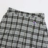 ソフトな肌触りとストレッチ性が特長のニット素材を使用した、抗菌防臭機能付きのスカートです。正面にプリーツを入れることで動きやすさと女性らしさを演出。ウエストはフィット感と伸縮性を高めるゴム入り仕様。ファスナーを左横に付けて脱ぎ着をしやすくしています。両サイドにポケットを付け、右ポケット内には物が取り出しやすいコインポケットを付けています。全面格子柄のデザインは、ブラックとグリーンとネイビーの3色使い、オフホワイトとブラックとグレーの3色使いの2タイプ。スウェットシャツとの相性も良く、様々なコーディネートが楽しめます。後部にDカン付き。