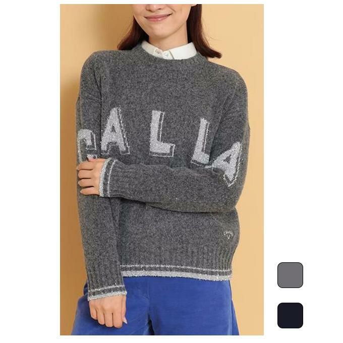 キャロウェイ callaway レディース ゴルフ ウェア トップス メタリックロゴクルーネックニット C24218203 【2024FW】