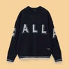 ウールタッチのポリエステル素材を使用した軽くてふくらみがあるニット。CALLAWAY文字をメタリックヤーンのジャカードで表現しており、袖口と裾にもメタリックのラインをいれたモード感のあるデザインです。程よく広めの身幅で、トレンドのシルエットが楽しめます。