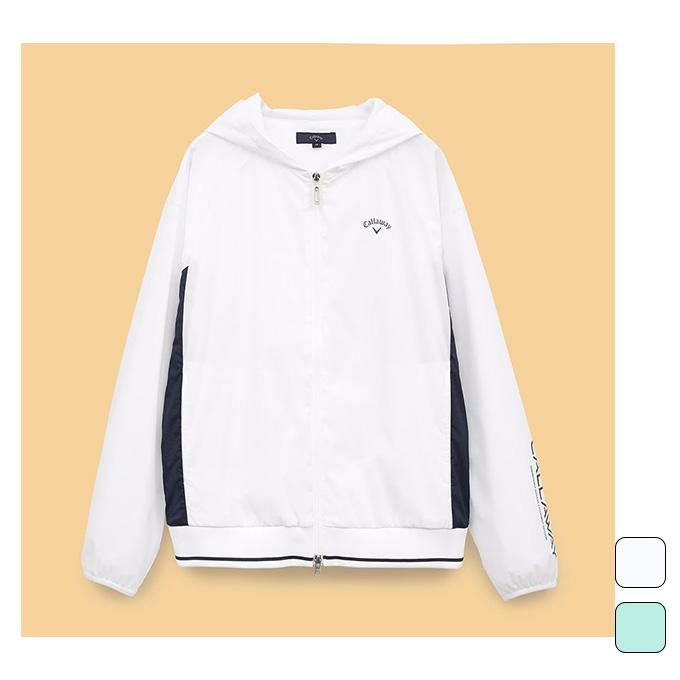 軽量でストレッチ性のあるナイロンアウターです。裾をリブ仕様、左袖にはシーズンフォントのキャロウェイをプリントし、スポーティーな印象に仕上げました。軽量でオールシーズン着用できるアウターです。
