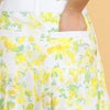 エレガントなフラワーをポリエステルツイル素材にプリント。ウエストとフロントサイド部分、ポケット口を異素材で切り替え、めりはりをつけたデザインの主役プリーツスカートです。