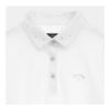 大きなカノコ目で表面感のある素材が特徴のベーシックな長袖シャツです。襟のクリスタルラインストーン、ボタンのシルバーライン、胸元のシルバープリントが統一感のあるデザインポイントとなっています。