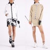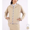 4WAYストレッチ性を特徴に持つソフトシェル素材で、どんな動きも妨げないスポーツ向けのフルジップフーディー。生地の一部に再生ポリエステルを含む柔らかな心地良い肌触りでサラリと着用いただけます。また悪天候にも対応する高い撥水性を併せ持っています。フロントは上からも下からも開閉可能なダブルジップ仕様で幅広い着こなしが楽しめます。ロゴ入りのパイピングが目を惹くブラック・ベージュに加えて、今期のテーマ柄カウスポットをプラスしたホワイトをご用意しました。