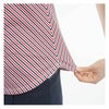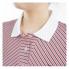 UVカット機能を備えた柔らかいジャージー素材を使用した、キャップスリーブポロシャツ。 サッカー調のしぼ感が特徴で、軽やかな着心地を提供します。パネル調のストライププリントが夏らしく、短めの袖丈のキャップスリーブとラウンドヘムがフェミニンな雰囲気を引き立てます。衿裏には通気性に配慮したメッシュ編みを採用し、快適さを確保しました。さらに、涼しげな花形のクリアボタンがデザインのポイントとなっています。 同柄のスカートとセットアップコーデもお勧めです。