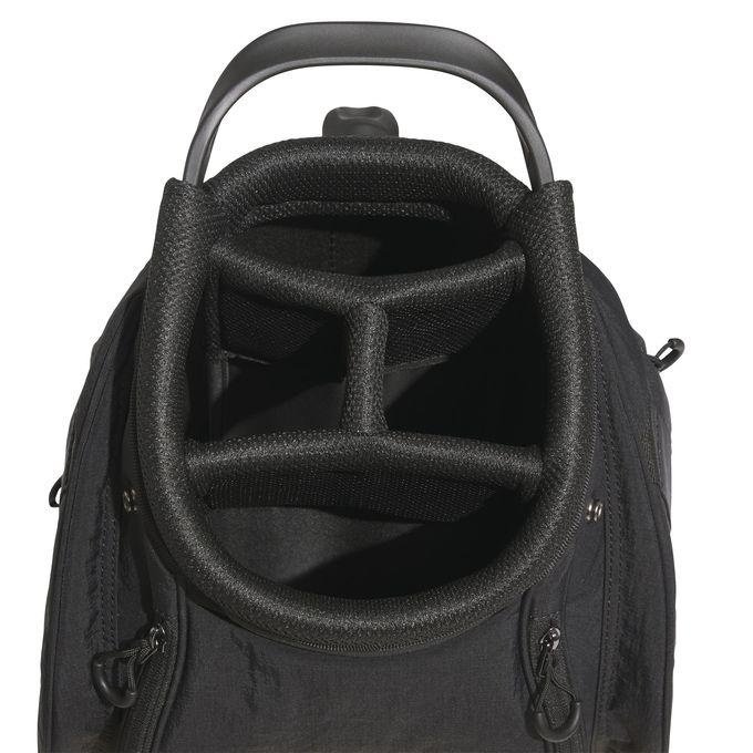 このアディダスのゴルフバッグがあれば、クラブの整理と準備が簡単になる。カートに載せて運ぶタイプの軽量バッグ。複数のポケットを備え、ボール、ティー、予備のアウターなどを収納可能。ショルダーストラップとキャリーハンドル付きで、車からカートまでの持ち運びもラク。
